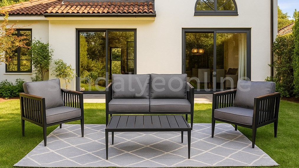 The Boston Knitted Garden Table And Balcony Set brings together durability and modern elegance with its aluminum frame coated in static paint. Standing out with its minimalist design, this set allows you to create a refined atmosphere in any outdoor space—from gardens and terraces to poolside areas and cafés. The set includes 1 table, 2 single armchairs, and 1 double sofa, offering a total seating capacity for 4 people. With cushions, the Boston series ensures extra comfort, while its clean and modern lines make it a timeless choice for both residential and commercial use.