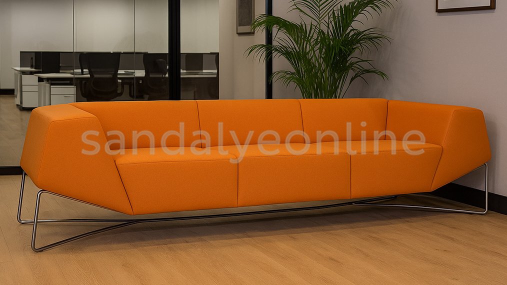 The Breeze Sofa is the perfect choice for spacious offices, waiting areas, and corporate interiors thanks to its modern design and comfortable structure. With seating capacity for three people, this sofa transforms into the decorative centerpiece of your space with its pastel color options and elegant lines. Its durable metal legs and high-quality grey foam filling ensure long-lasting comfort without sagging, even with extended use. The Breeze Sofa pairs beautifully with glass tables and modern furniture, and can be custom-made in different colors and fabrics upon request.