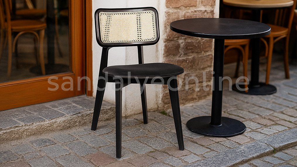 The Cane Wooden Chair Black reflects timeless elegance with its sophisticated black finish and refined rattan backrest. Designed with durability and style in mind, this model combines the nobility of black with clean, modern lines, making it a perfect choice for both residential and commercial interiors. Its upholstered seat ensures long-lasting comfort, while the sturdy wooden frame is crafted for intensive use in busy environments. Thanks to its armless design, the chair saves space and can be easily paired with different types of tables or coffee tables. When combined with sleek glass tables, it adds a modern and elegant atmosphere to any setting.