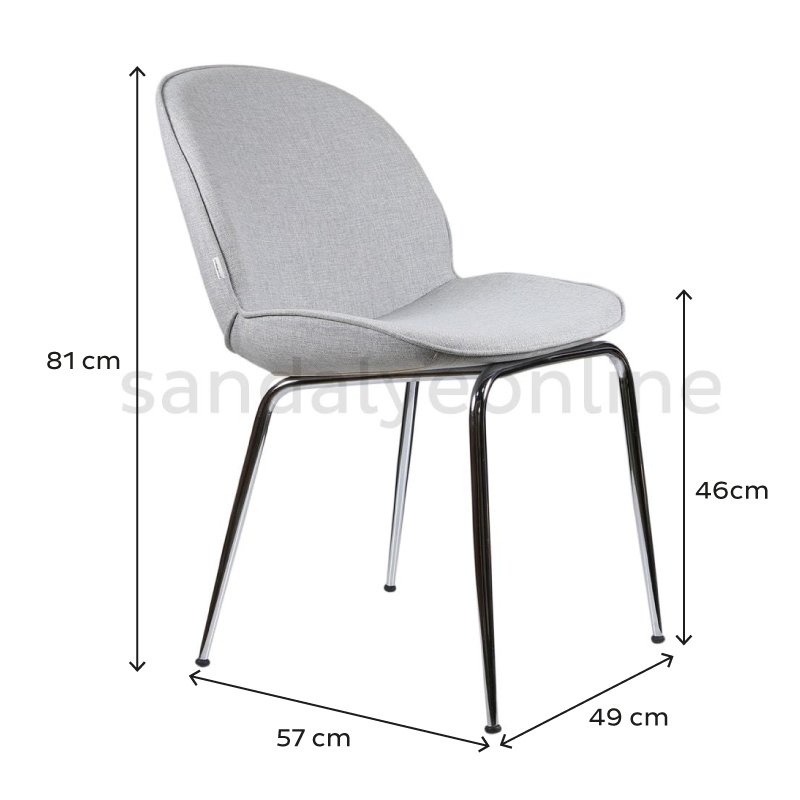 The chair’s dimensions are 81 cm in height, 49 cm in width, 57 cm in depth, with a seat height of 46 cm.