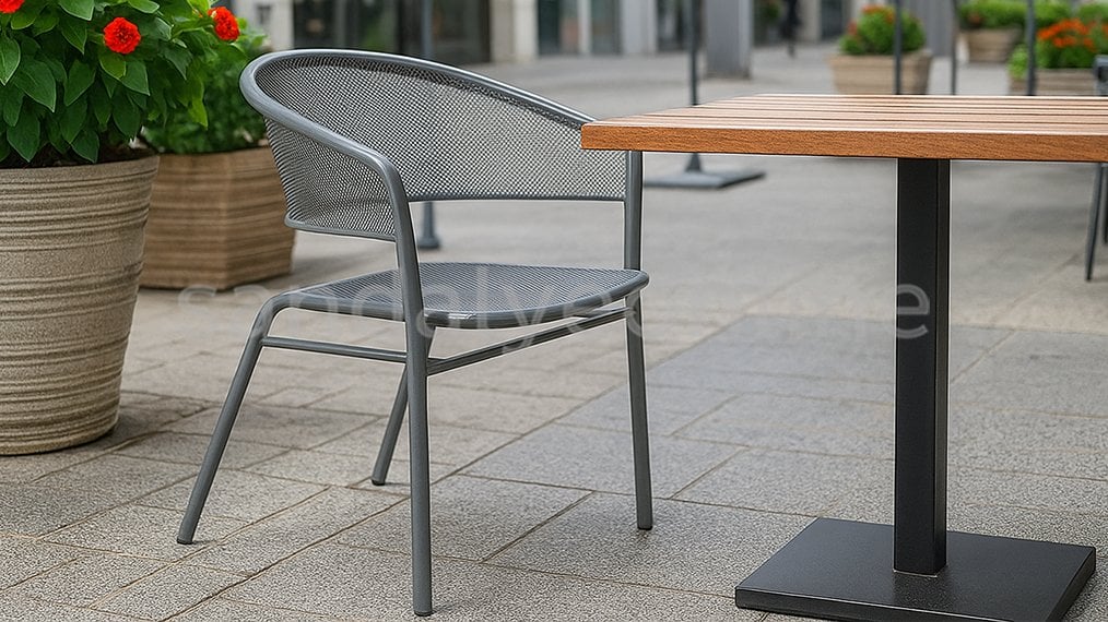 The Demre Metal Arm Chair offers long-lasting durability and comfort with its sturdy metal frame, ergonomic armrest design, and minimalist style, making it suitable for both residential and commercial spaces. The armrest structure enhances seating comfort, while the metal body ensures high resistance to outdoor conditions. Its static powder-coated finish protects against heat, moisture, and rain, making it ideal for gardens, balconies, terraces, and high-traffic commercial venues such as cafés, restaurants, and hotels. Thanks to its lightweight design, it can be easily moved and positioned in any setting.
