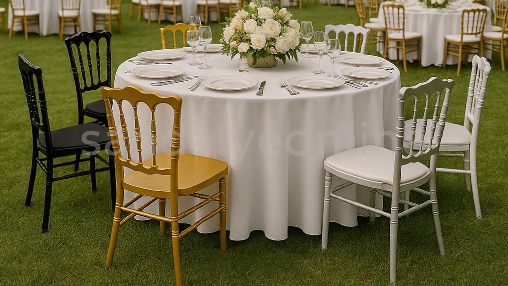 - Outdoor Venues: Perfect for garden, poolside, or countryside events with its UV-resistant surface.