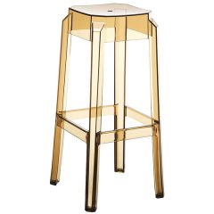 Combining elegance and functionality, the Elizabeth Bar Stool Gold Transparent stands out with its modern design and sleek, see-through aesthetic. Made from high-quality, durable polycarbonate material, this stool attracts attention with its stylish appearance and solid structure. Its transparent body adds depth and openness to spaces while interacting beautifully with light to create a contemporary atmosphere. With its minimal form, it is perfectly suited for bar tables, high countertops, and interior design projects. Its lightweight structure and stackable feature make it extremely practical to transport and store. An ideal choice for users seeking elegance in both indoor and outdoor settings.
