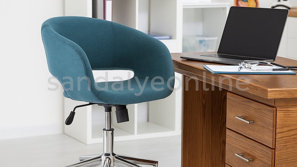 Among office chair varieties, the Firuze Office Chair stands out with both its design and comfort. If you are looking for a combination of modern lines, ergonomics, and durability for your workplace, the Firuze model will meet your expectations. The fixed-leg version offers a more dynamic and minimal look, while the height-adjustable and wheeled version provides maximum convenience for desk workers. The wheeled model, with its 360° swivel function and adjustable locking height mechanism, allows free movement within your workspace. The shared feature of both models is the ergonomic form that conforms to the body’s natural curves, providing back and lumbar support during long sitting sessions. Its navy-blue color brings vibrancy to modern office décor.