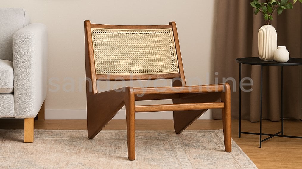 The Kanguru Hazeranlı Chair highlights the perfect harmony of wood and wicker, offering a stylish and timeless design. With its armless structure, it provides a sleek and elegant look that fits seamlessly into both classic and modern interiors. The cane weave used in the backrest and seat area is complemented by sturdy wooden legs, creating a natural and aesthetic unity. Distinguished by its refined design, the Kanguru Chair combines durability with a timeless appearance, making it a reliable furniture choice for years to come. Ideal for those who want to create stylish corners indoors, it offers both elegance and functionality in one piece.
