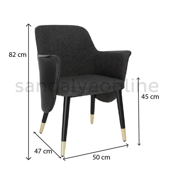 The chair’s dimensions are 82 cm in height, 50 cm in width, 47 cm in depth, with a seat height of 45 cm.
