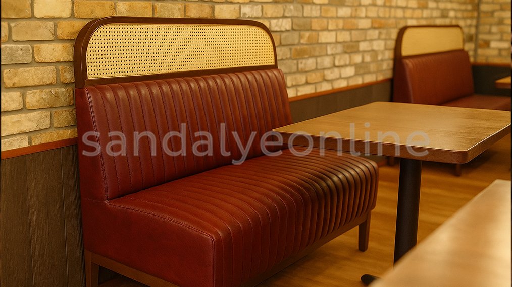 Combining elegance and comfort, the Maribo Hazeran Sliced Cafe Sofa adds a nostalgic and refined touch to your interior décor. Its armless design, cane-detailed top, and paneled structure make it a versatile choice that harmonizes with both classic and modern concepts. Supported by sturdy wooden details and filled with high-quality grey foam, the Maribo bench ensures long-lasting use. It can be arranged as a single, double, or triple unit, allowing flexible seating layouts. Perfect for restaurants, cafés, executive offices, or even home décor, this model offers a stylish and functional solution for welcoming guests.