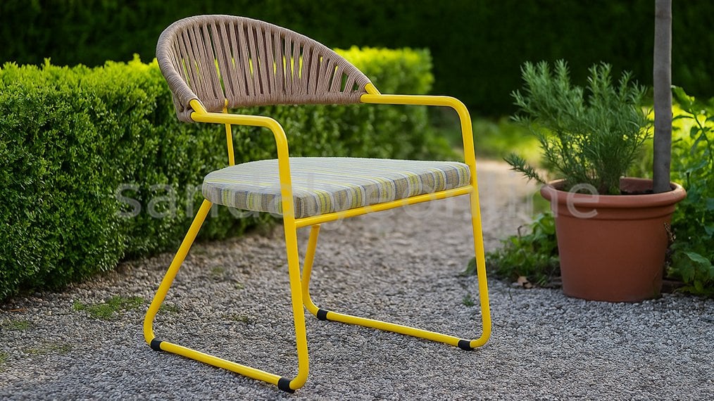 The Minelli Garden Chair stands out with its elegant metal frame shaped by refined curves and a semi-oval wicker backrest. Blending modern lines with natural wicker weave, this chair offers both aesthetic appeal and functional use. With its durable yet lightweight structure and budget-friendly advantage, Minelli is one of the most popular choices for gardens, balconies, and café decorations.