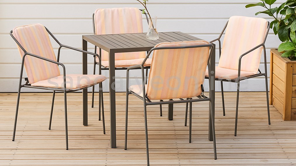 The Morita Garden Chair combines the lightness, practicality, and aesthetic appeal sought after in outdoor furniture. Its sturdy frame, crafted from slim metal rods, and upward-curving armrest design offer both elegance and long-lasting use. The pink-and-white striped cushion shown in the photos can be customized in various colors and patterns upon request. Unlike plastic or wicker materials that can deteriorate over time, Morita’s metal construction provides superior resistance to sunlight, humidity, and temperature changes. This makes it an ideal long-term seating solution for spaces ranging from summer homes to hospitality venues.