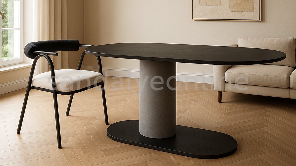The Ocean Dining Table stands out with its modern, minimalist lines and elegant blend of metal and wood. Its oval shape not only enhances aesthetics but also creates a warm, interactive environment for users.