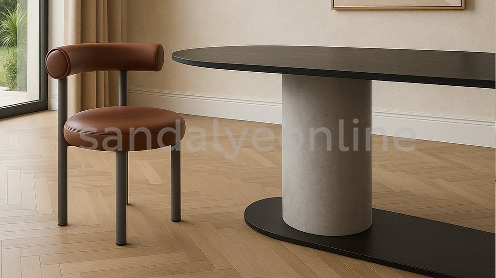 The Rio Metal Chair is an excellent choice for both home and commercial interiors, thanks to its elegant design, durable structure, and versatile use. With its stylish, practical, and functional features, it easily adapts to different spaces. Especially popular for dining tables and compact areas, its minimal size allows it to fit comfortably under tables, offering smart space-saving solutions. Featuring a leather seat and customizable RAL-painted frame, it combines comfort with aesthetics.