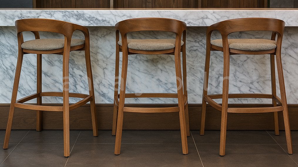 The Salento Wooden Bar Chair blends elegance and durability, offering both functionality and style. With its modern design, it creates a sophisticated atmosphere in bars, restaurants, cafés, and home bar areas. The rounded backrest and ergonomic seat provide comfort even during long seating periods, making it ideal for both professional and residential use.