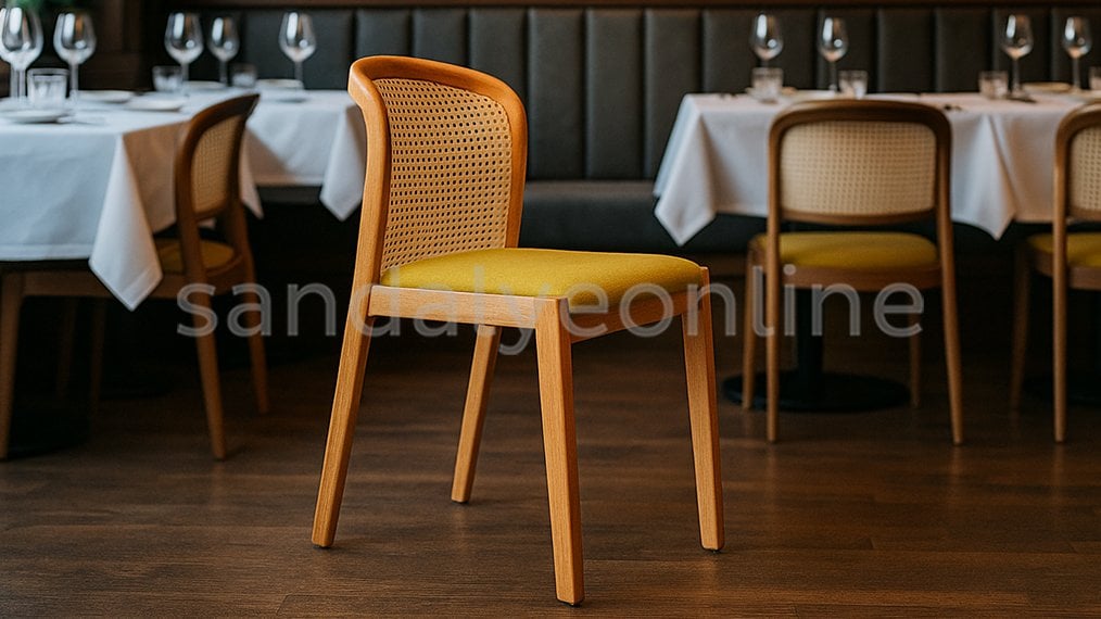 Sapere Wooden Chair brings freshness and sophistication to interiors with its minimalist lines and modern design. Its armless structure makes it especially practical for narrow or crowded spaces, while the rattan backrest and natural wood finish brighten living areas with a warm and airy atmosphere. Designed with an ergonomic form, Sapere ensures comfort during long seating periods and offers a reliable experience with a weight capacity of up to 120 kg. Lightweight and portable, it is also equipped with protective floor-friendly caps, making it safe and practical for any setting.