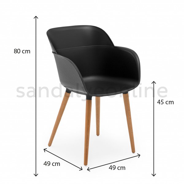 The chair’s dimensions are 80 cm in height, 49 cm in width, 49 cm in depth, with a seat height of 45 cm.