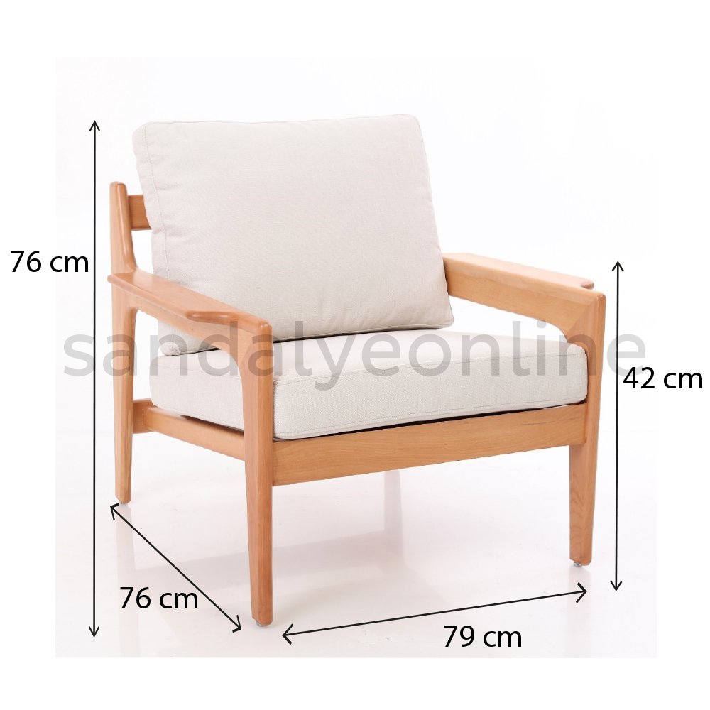 Ürünün yüksekliği 76 cm, genişliği 79 cm, derinliği 76 cm ve oturum yüksekliği 42 cm'dir.