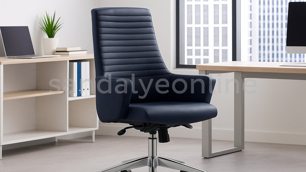 Avis Çalışma Sandalyesi, göz alıcı lacivert tonları, özel kumaş kaplaması, entegre kolçak tasarımı ve sırt kısmındaki kat kat dikiş detayları ile hem estetik hem de konforu bir arada sunuyor. Modern ofislerden ev çalışma alanlarına kadar geniş kullanım alanına sahip olan bu model, uzun süreli oturumlarda ergonomik destek sağlayarak verimliliği artırıyor. Şık tasarımıyla çalışma alanlarınıza prestij ve sofistike bir görünüm katarken, dayanıklı yapısıyla uzun yıllar güvenle kullanılabilir.
