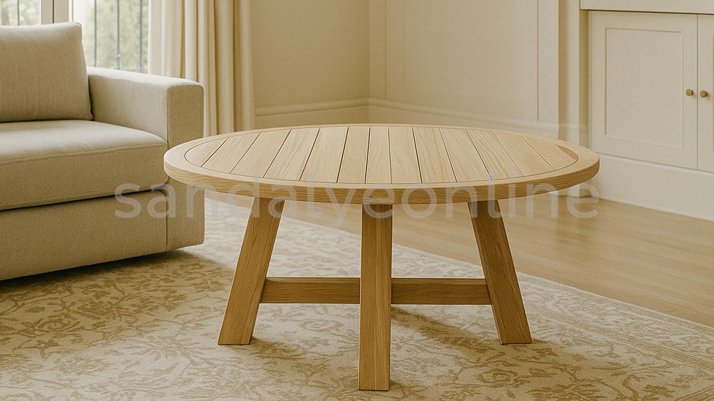 - Yuvarlak ahşap tabla doğal ahşap görünümü ile estetik ve sıcak bir atmosfer yaratır.