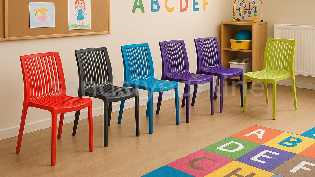 Çocuklara özel tasarlanan Cool Plastik Kreş Sandalyesi Yeşil, hem dayanıklılığı hem de ergonomik yapısıyla dikkat çeken bir üründür. Okullardan kreşlere, kantinlerden sahil işletmelerine kadar birçok alanda güvenle kullanılabilen bu sandalye modeli, uzun ömürlü plastik malzemeden üretilmiştir. Yıllarca formunu koruyan yapısı sayesinde hem iç hem de dış mekanlarda tercih edilebilir. Kolay temizlenebilen yüzeyi, hijyenin önemli olduğu kreş ve okul gibi alanlarda avantaj sağlarken; istiflenebilir tasarımı sayesinde yerden tasarruf ettirir. Kum beji, beyaz, siyah, bej, kırmızı, mavi gibi geniş renk seçenekleri ile dekorasyonunuza kolayca uyum sağlar. Hem çocukların güvenliğini hem de konforunu düşünerek üretilen Cool Plastik Kreş Sandalyesi Yeşil, güçlü iskeletiyle uzun saatler kullanımda bile rahatlık sunar.