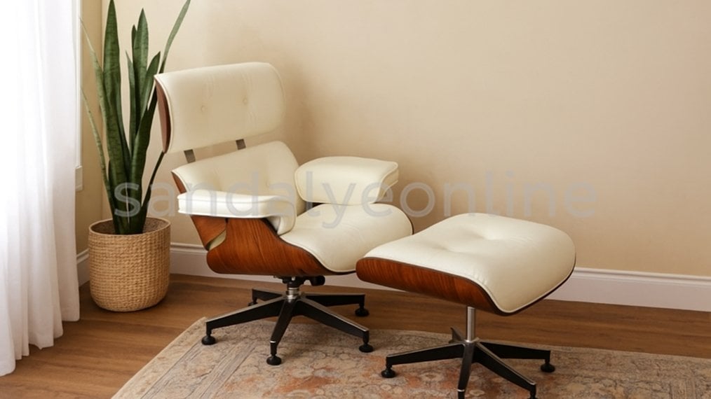 Zamansız tasarımı ve üstün konforu ile öne çıkan Eames Lounge Ottoman Koltuk, dinlenme alanlarınıza şıklık ve rahatlık katar. Deri kaplamalı yüzeyi, kolay temizlenebilir yapısı ve ergonomik oturum desteği ile hem evlerde hem de ofislerde uzun süreli kullanım için idealdir. Ayak uzatma pufu ile birlikte kombinlenerek bütüncül bir görünüm sağlayan bu model, modern dekorasyonların vazgeçilmez parçası haline gelir. Farklı kumaş ve renk seçenekleri sayesinde kişisel zevkinize göre özelleştirilebilir.