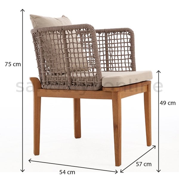 Ürünün yüksekliği 75 cm, genişliği 57 cm, derinliği 54 cm ve oturum yüksekliği 49 cm'dir.