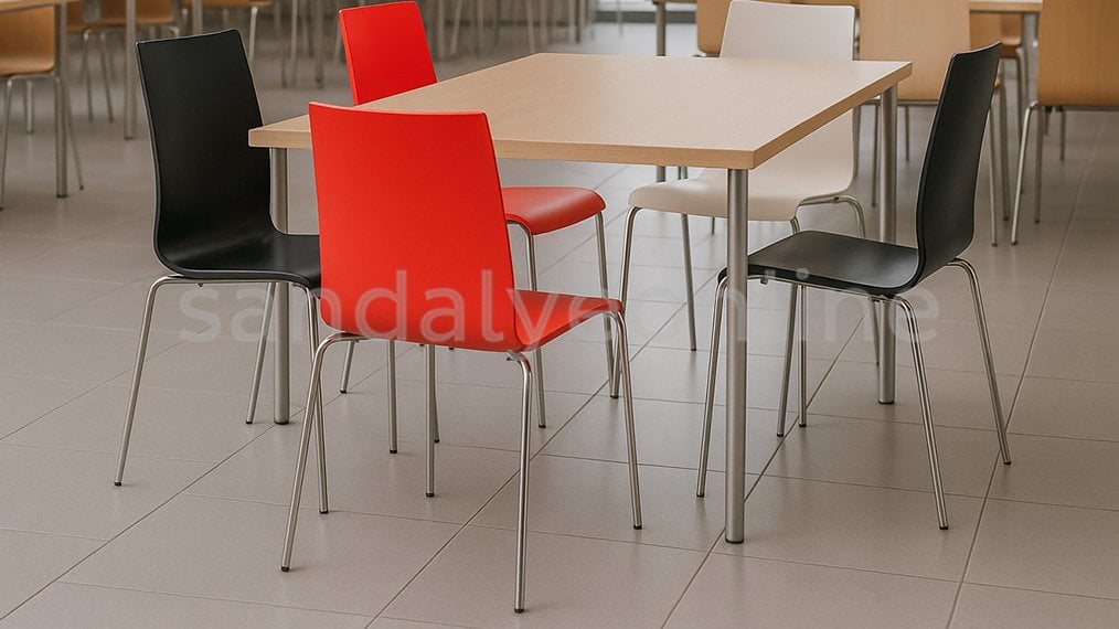 - Kantin & Yemekhanelerde kolay temizlenebilir yüzeyi ve metal ayaklı dayanıklı iskeletiyle kalabalık alanlar için idealdir.