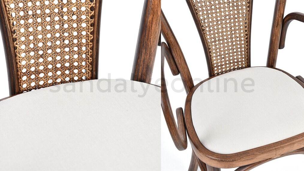 - Sırt bölümünde doğal hazeran detayı Kolçaklı ve döşemeli yapısıyla ekstra konfor sunar.