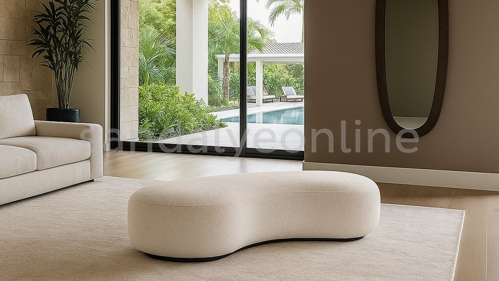 Kenner Bank, oval formu, dokulu beyaz kumaşı ve doğal ahşap ayaklarıyla hem zarafet hem de konfor sunar. Modern ve minimalist tasarımıyla evinizin ya da iş yerinizin dekorasyonuna sofistike bir dokunuş katar. Hem oturma çözümü hem de dekoratif mobilya olarak işlevselliğiyle öne çıkar.