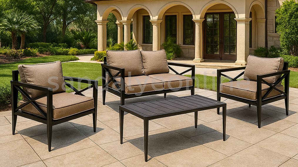- Rahat oturum sağlayan özel tasarım kanepe, koltuk ve masa kombinlerine uyum sağlar.