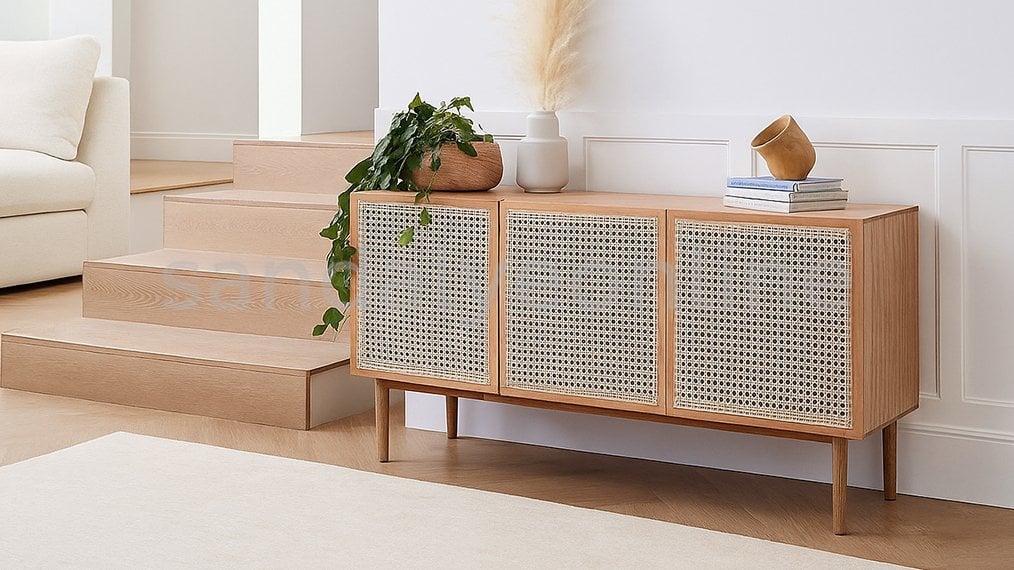 Natura Ahşap Hazeranlı Konsol, şıklığı ve işlevselliği bir araya getirerek evinize doğal bir zarafet katıyor. Ortaçağ esintilerini İskandinav tarzıyla buluşturan bu özel tasarım, hem retro havasıyla dikkat çeker hem de modern yaşam alanlarına uyum sağlar. Dayanıklı meşe ağacından üretilen konsol, kendine özgü renk tonlarıyla doğal bir sıcaklık sunarken; tamamen el işçiliğiyle hazırlanan hazeran (rattan) kapakları sayesinde otantik bir karakter taşır. Sahil esintilerini evinize getiren Natura, antre çözümlerinizin yanı sıra salon, çalışma odası ve ofislerde de şıklıkla kullanılabilir.