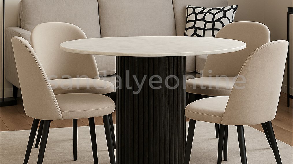 Pure Siyah Sehpa, dairesel formu ve zarif mermer tasarımıyla yaşam alanlarınıza modern bir dokunuş katar. Alçak yapısıyla klasik yemek masalarından ayrışan bu model, sehpa formunu çağrıştıran estetik bir görünüme sahiptir. Mermer tablası sayesinde kolayca temizlenir, leke tutmaz ve uzun yıllar boyunca ilk günkü şıklığını korur. Minimalist ve modern dekorasyon anlayışına hitap eden Pure sehpa, özellikle puf ve metal detaylı sandalyelerle kombinlendiğinde mekanlarınıza lüks bir atmosfer kazandırır. Hem iç hem de dış mekanlarda rahatlıkla kullanılabilen bu model, fonksiyonel ve dekoratif bir çözüm arayanlar için ideal tercihlerden biridir.