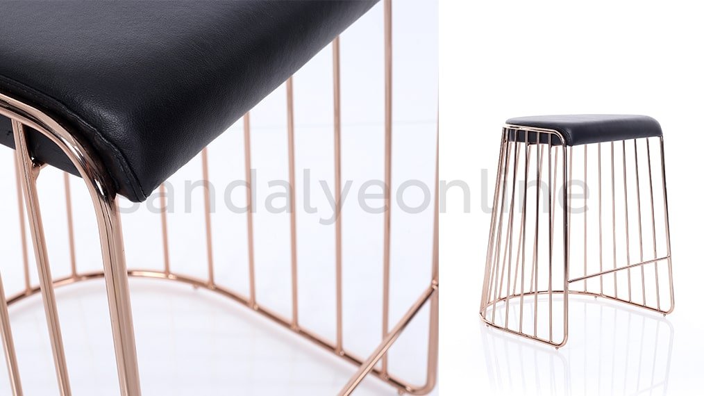 - Sırt dayamasız minimalist tasarım ile modern bir görünüm sunar. Metal gövdesi sağlam ve uzun ömürlüdür. Yumuşak minderli oturumu ekstra konfor sağlar. Hafif ve taşınabilir yapısı sayesinde kullanım kolaylığı sunar. Altın, bakır veya isteğe bağlı renk seçenekleri mevcuttur.